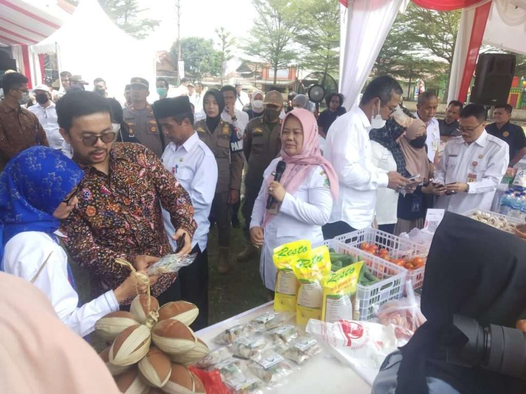 Ada berbagai jenis bahan kebutuhan pokok yang dijajakan oleh hampir 40 stand UMKM yang berjejer. Dari mulai cabe merah, cabe rawit, bawang merah, bawang putih, gula pasir, minyak goreng, beras, telur ayam, daging ayam, sayuran serta berbagai produk lokal unggulan lainnya.