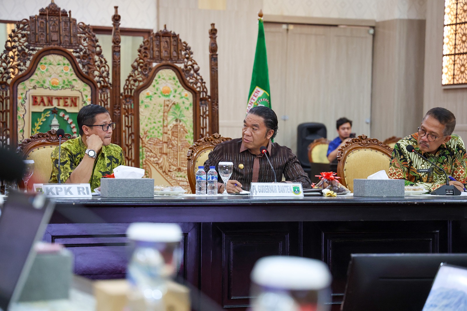 “Pemerintah hadir dan melakukan berbagai upaya untuk bisa memanfaatkan aset itu,” ungkap Al Muktabar usai Rapat Koordinasi (Rakor) Fokus Area Pengelolaan BMD khususnya pada bidang penataan aset Situ, Danau, Waduk dan Embung dengan KPK di Pendopo Gubernur Banten, KP3B Curug, Kota Serang, Kamis (19/10/2023).