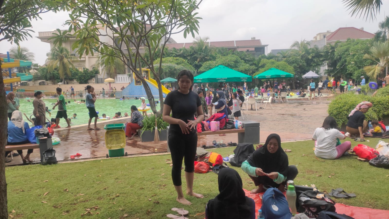 “Waduh mas..sudah dua tempat rekreasi yang saya kunjungi sama keluarga saya itu ramai sekali. Tadi sebelumnya di kolam renang Moderland penuh, lalu saya pergi ke kolem renang Newton yang di Pasar baru juga penuh. Dan akhirnya, saya dapet lokasinya di sini yang gak begitu penuh pengunjungnya,” ucap Riska, (28) satu dari pengunjung.