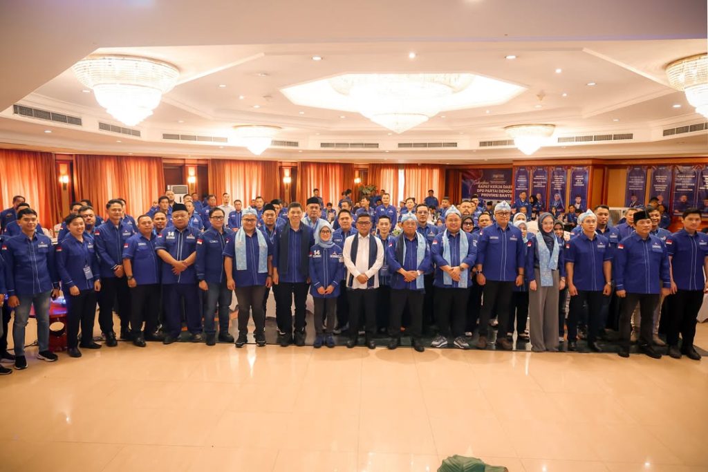 Serang, (BantenKita) – Gubernur Banten Andra Soni menghadiri undangan pembukaan Rapat Kerja Daerah (Rakerda) DPD Partai Demokrat di Ledian Hotel, Kota Serang, Minggu (5/10/2025). Di sana, gubernur berbicara mengenai pentingnya sinergi seluruh pihak dalam mewujudkan pembangunan daerah yang saat ini dilakukan Pemerintah Provinsi (Pemprov) Banten.