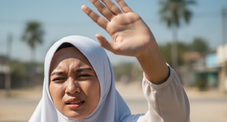 - Pilih Pakaian yang Tepat: Kenakan pakaian berbahan longgar, ringan, dan mudah menyerap keringat seperti katun. Hindari pakaian berwarna gelap karena cenderung menyerap panas lebih banyak. Gunakan topi lebar dan kacamata hitam untuk perlindungan ekstra.