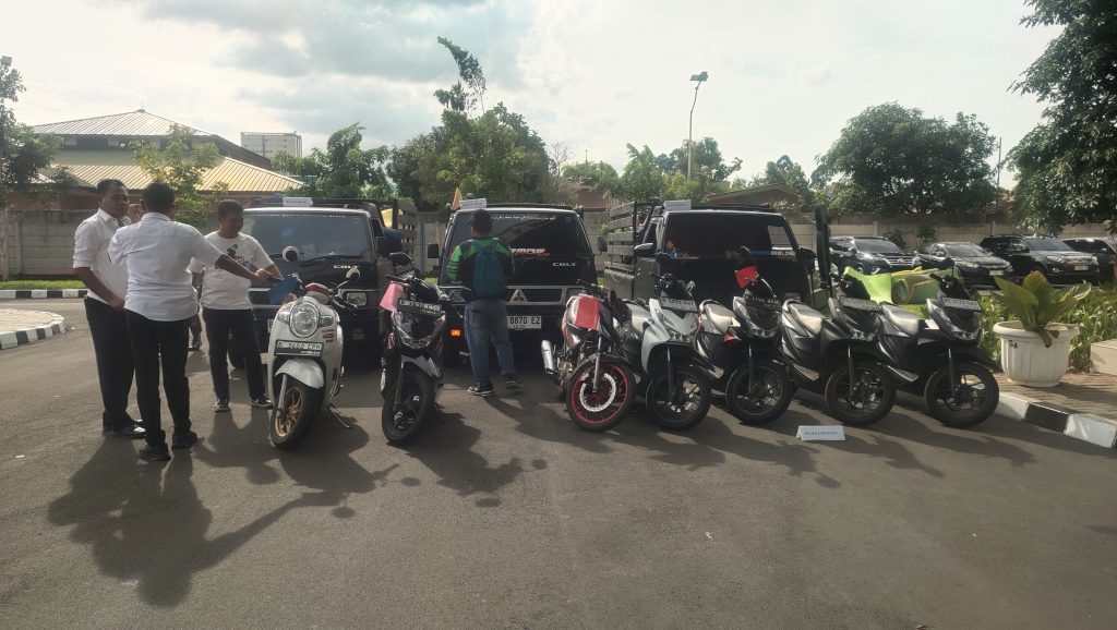 Dari tangan para pelaku, polisi berhasil mengamankan 21 unit sepeda motor hasil curian, 3 unit mobil yang digunakan untuk mengangkut hasil kejahatan, serta 3 bilah senjata tajam, 35 mata kunci palsu, dan 7 kunci leter T.Kapolres menambahkan, tiga mobil tersebut berhasil diamankan saat petugas melakukan penangkapan tangan terhadap para pelaku yang hendak membawa 14 motor curian ke wilayah Lampung.