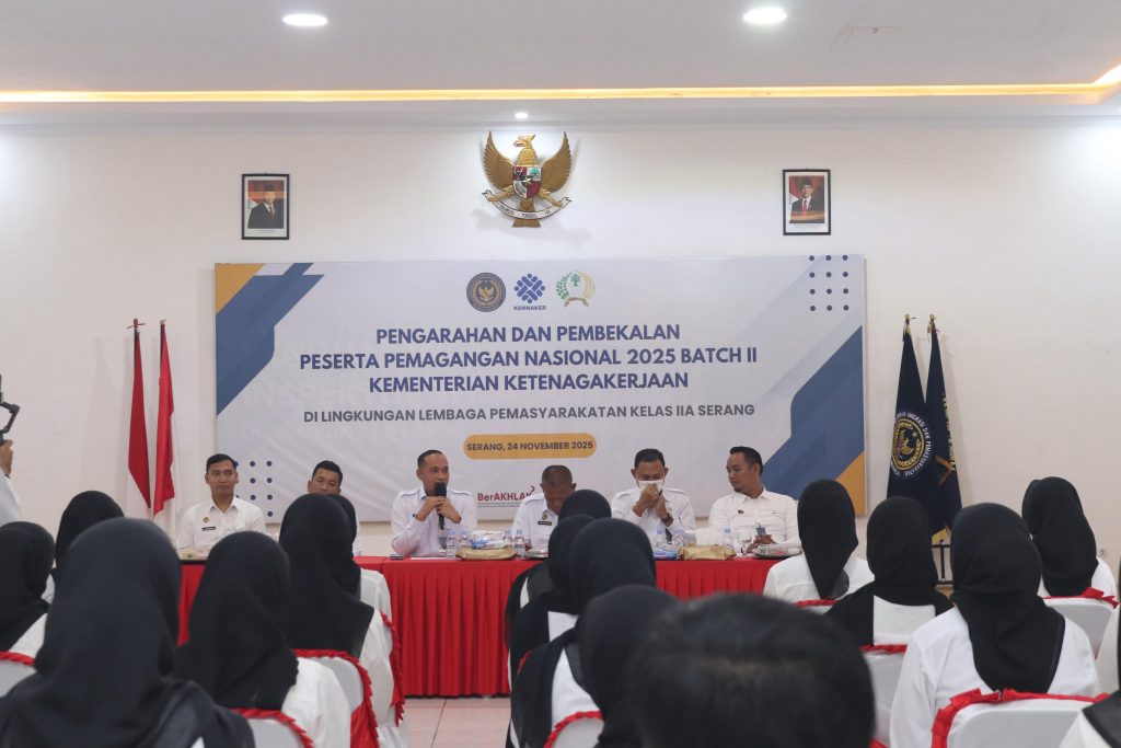 Serang, Bantenkita.com — Lembaga Pemasyarakatan (Lapas) Kelas IIA Serang resmi menerima 45 peserta Program Pemagangan Nasional Batch 2 Fresh Graduate dari Kementerian Ketenagakerjaan (Kemenaker), Senin (24/11).