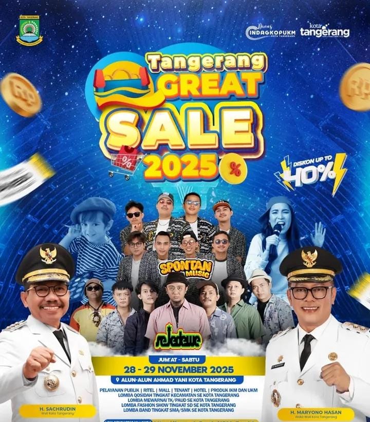 Tangerang(Bantenkita)- Masyarakat Kota Tangerang bersiap menikmati pesta belanja tahunan. Pemerintah Kota (Pemkot) Tangerang melalui Dinas Perindustrian, Perdagangan, Koperasi dan UKM kembali menggelar Tangerang Great Sale 2025. Sebuah program diskon besar-besaran yang menghadirkan potongan harga hingga 40 persen selama satu bulan penuh.