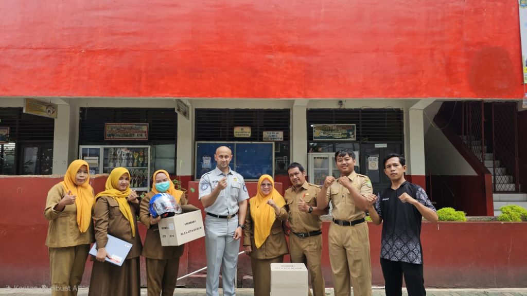 Selain edukasi, kegiatan ini juga disertai dengan pembagian helm keselamatan kepada para guru sebagai bentuk dukungan nyata terhadap penerapan keselamatan berlalu lintas dalam kehidupan sehari-hari.