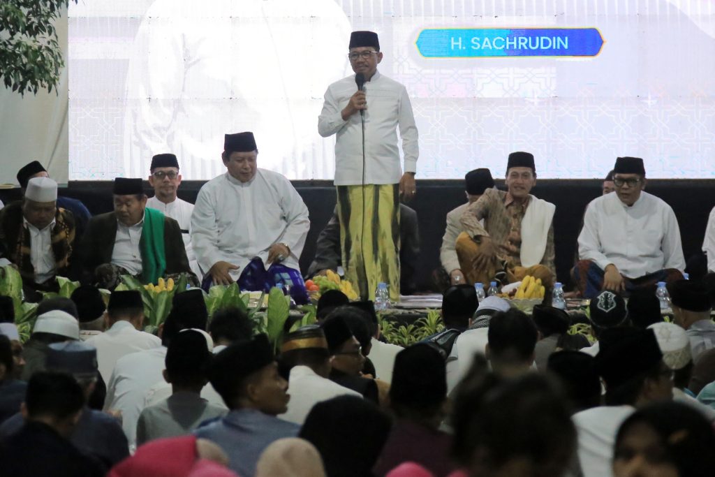 “Kita yang hadir pada pengajian bulanan ini bersama-sama memanjatkan doa untuk saudara-saudara kita di Aceh, Sumatera Utara, dan Sumatera Barat, agar senantiasa diberikan keselamatan, kekuatan, serta diringankan segala beban dan kesulitannya dalam menghadapi musibah,” ujar Sachrudin.