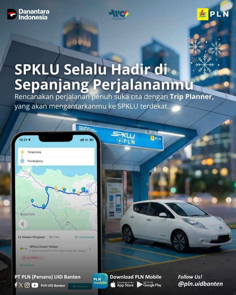 Tangerang, (BantenKita) – Libur Natal 2025 dan Tahun Baru 2026 selalu menjadi momen dengan mobilitas tinggi. Banyak keluarga melakukan perjalanan jarak jauh, baik untuk berlibur maupun bersilaturahmi. Bagi pengguna _Electric Vehicle_ (EV), perjalanan bukan hanya soal rute dan waktu tempuh, tetapi juga memastikan pengisian daya dapat dilakukan dengan nyaman di sepanjang perjalanan, tanpa harus terjebak antrean panjang.