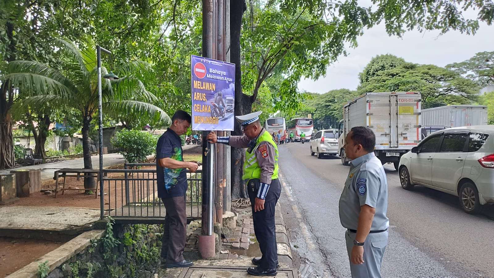 Jasa Raharja dan Kepolisian Tekan Angka Kecelakaan Melalui Aksi Pemasangan Spanduk Keselamatan di Jantung Kota Tangerang