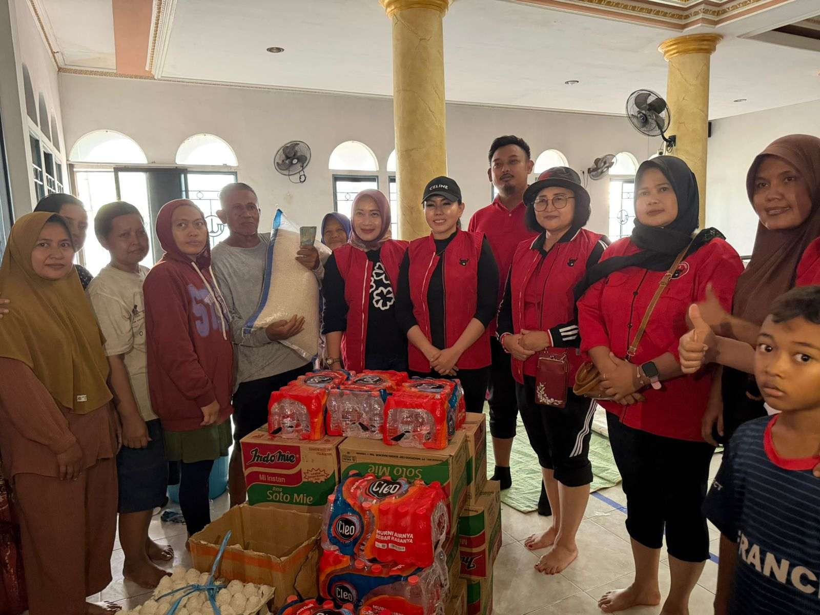 Foto kebersamaan para kader PDI Perjuangan menyalurkan sejumlah bantuan pangan bagi warga yang terdampak banjir di posko pengungsian.