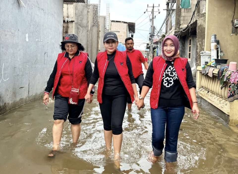 Para kader PDI Perjuangan saat melakukan peninjauan warga terdampak banjir di wilayah Kosambi Kab.Tangerang.