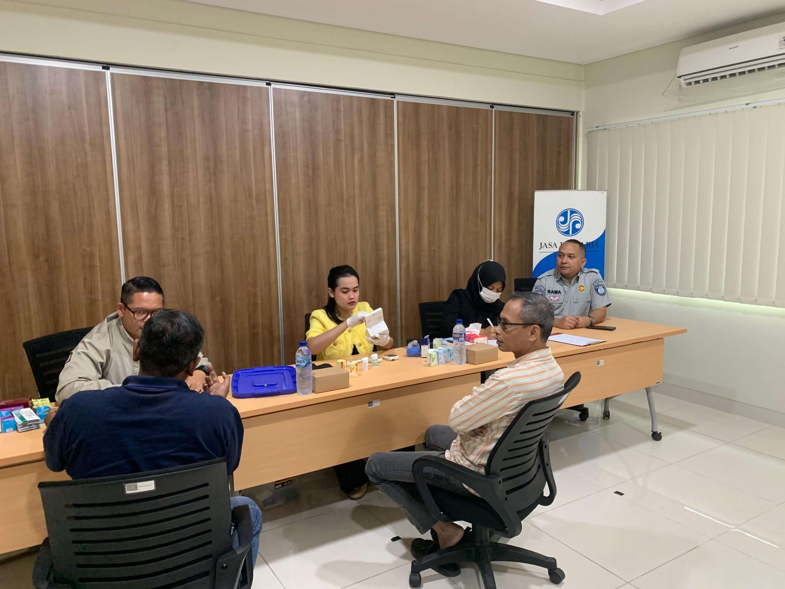 Dalam kegiatan tersebut, Jasa Raharja Cabang Tangerang menggandeng tenaga medis dari rumah sakit untuk memberikan layanan pemeriksaan kesehatan kepada para peserta.